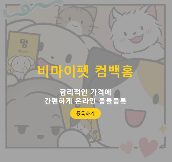 2개월령 이상 강아지를 필수로 등록해야 하는 시대입니다. 우리 가족인 반려동물의 안전을 위해서도 필요한 장치인데요. 등록을 안 할 시에 과태료가 부과되고 광견병 예방접종이나 반려견 놀이터 출입 등 국가에서 제공하는 혜택에서 제한을 받습니다. 일상이 너무 바빠서 구청이나 병원에 방문하시기 어려우신 분들을 위해 온라인으로 공식대행업체를 이용해서 등록할 수 있는 시스템입니다. 심지어 외장형 무선식별장치를 인식표로도 사용이 가능해서 우리 가족에게 독특하고 이쁜 인식표를 선물해 주세요.